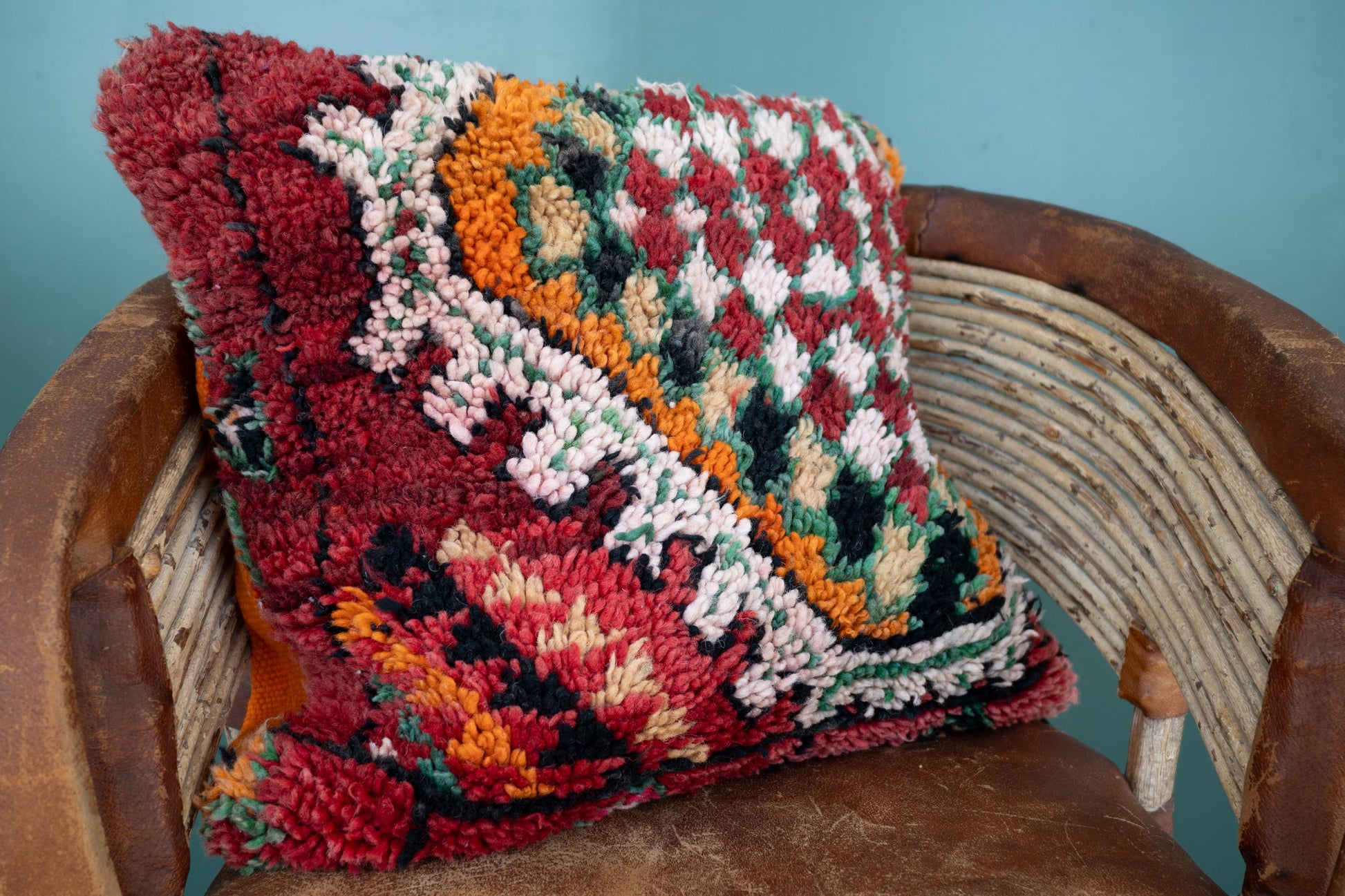 Handmade Moroccan Pillow Cover | Upcycled Rug Cushion | Boho Eclectic Decor | Maximalist