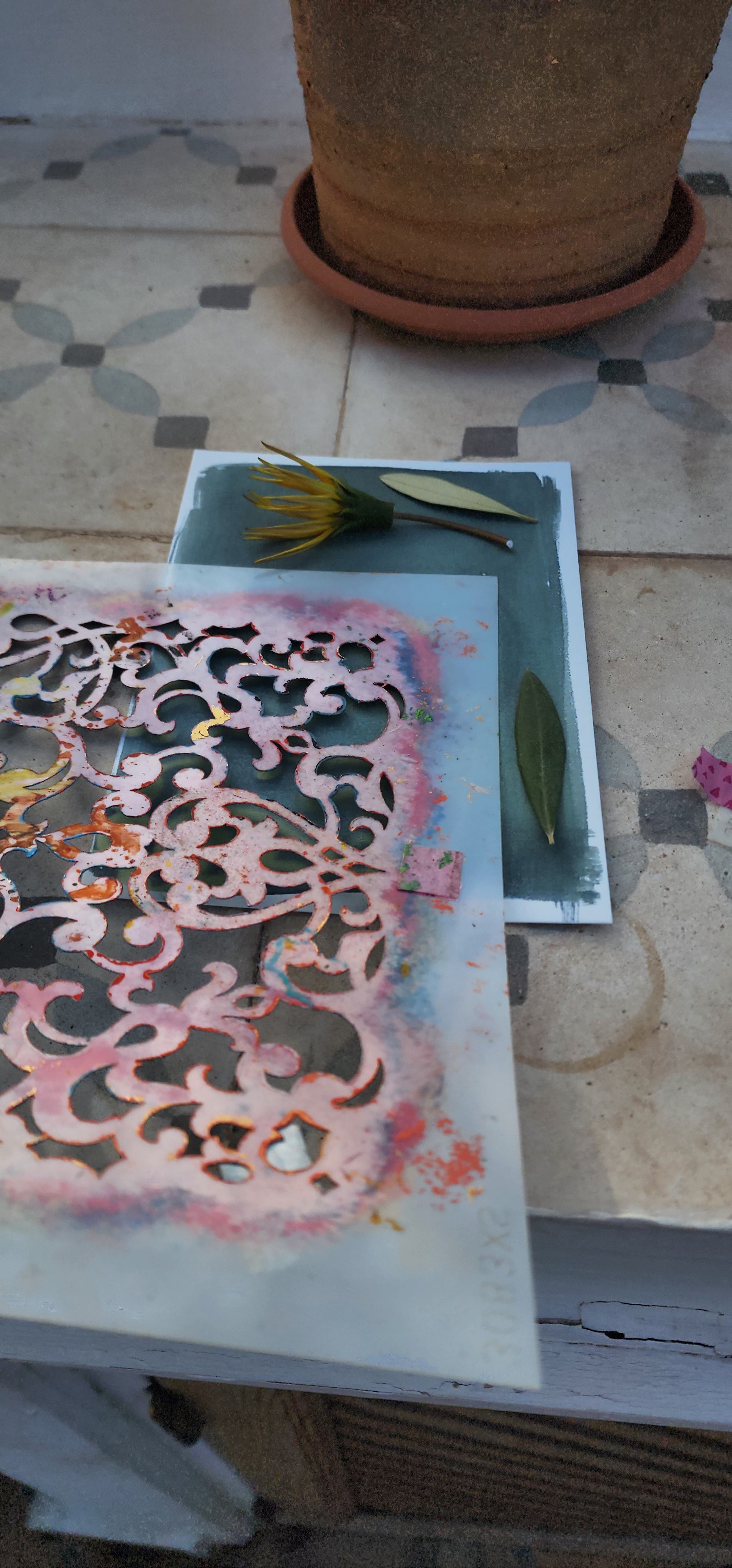 -- Supplies for printing (dried flowers, interesting objects, stencils)