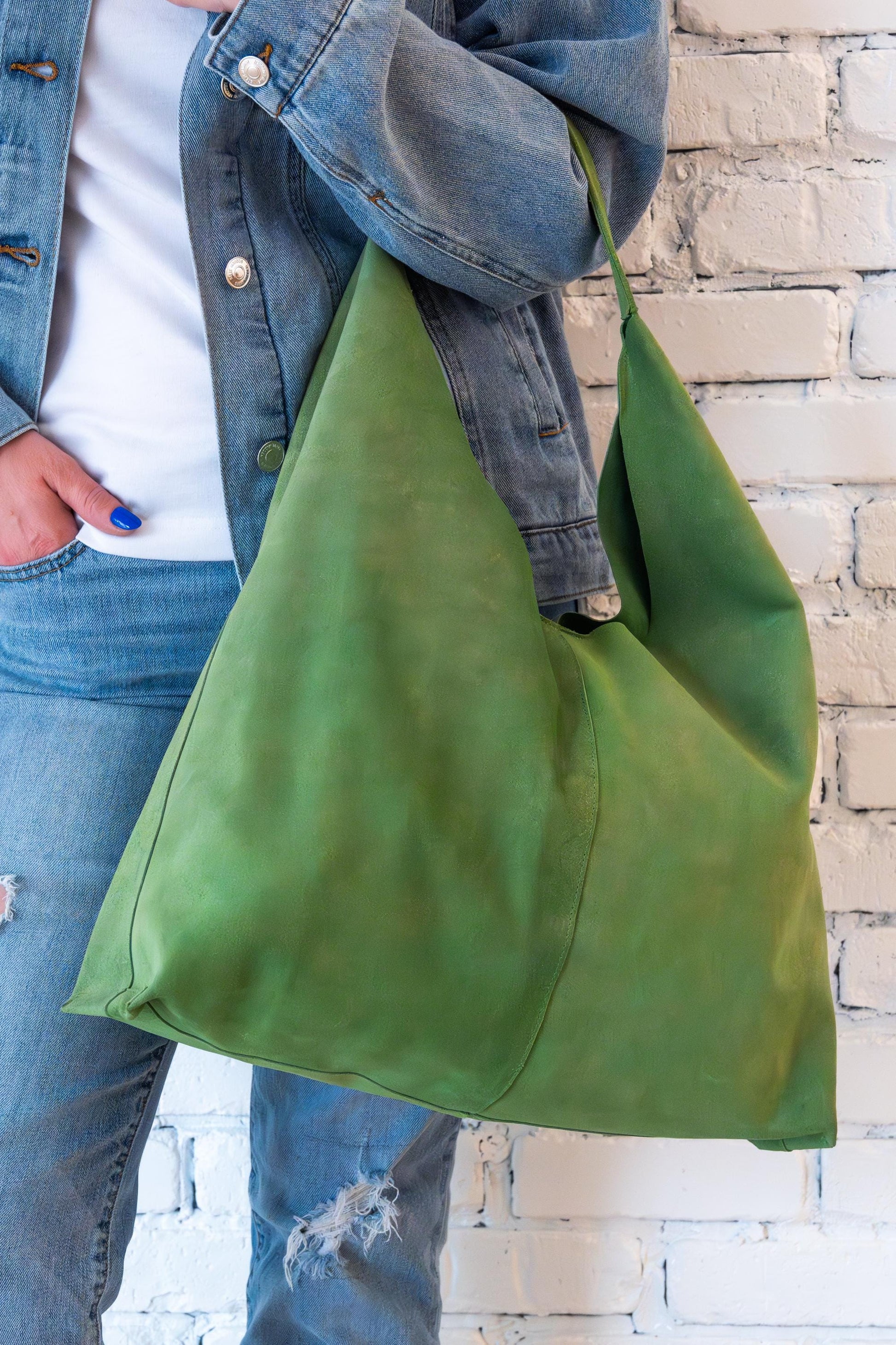 Moroccan Handcrafted Leather Tote: Stylish Everyday Carry for Work, Travel & Shopping, Suede Hobo, Slouchy Hobo Bag
