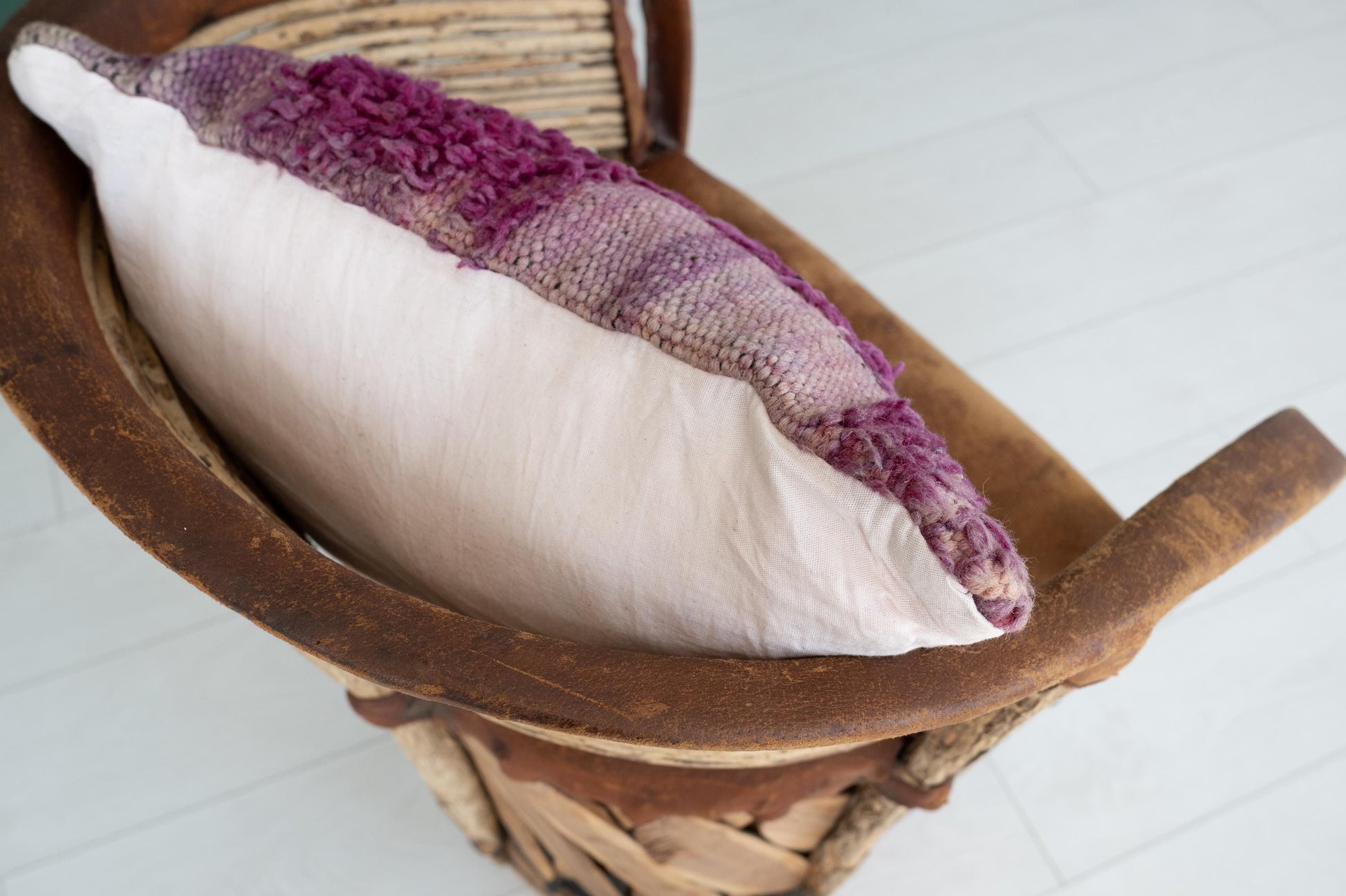 Purple Moroccan Pillow | Textured Wool Cushion Cover | Upcycled Berber Rug Accent