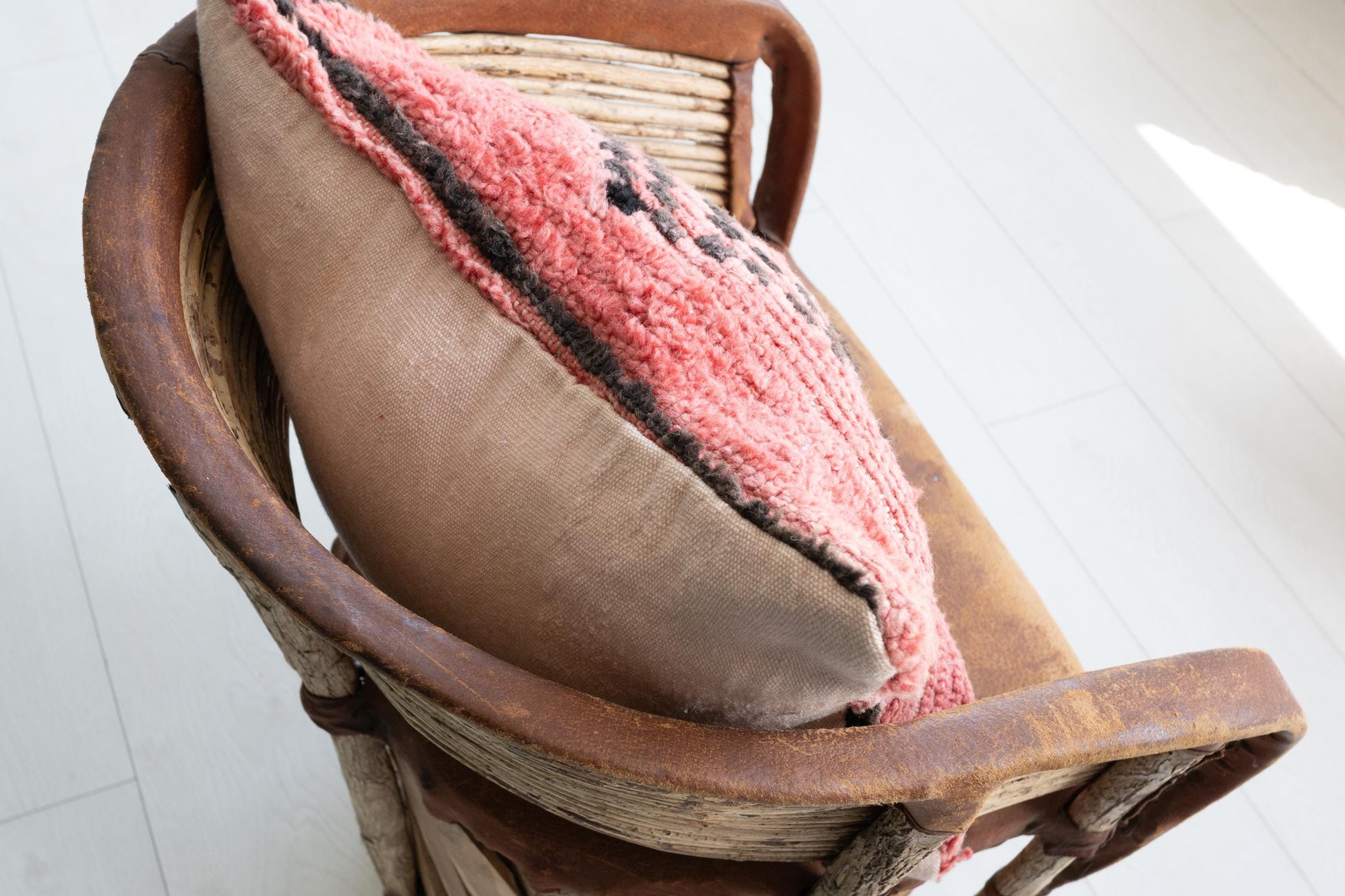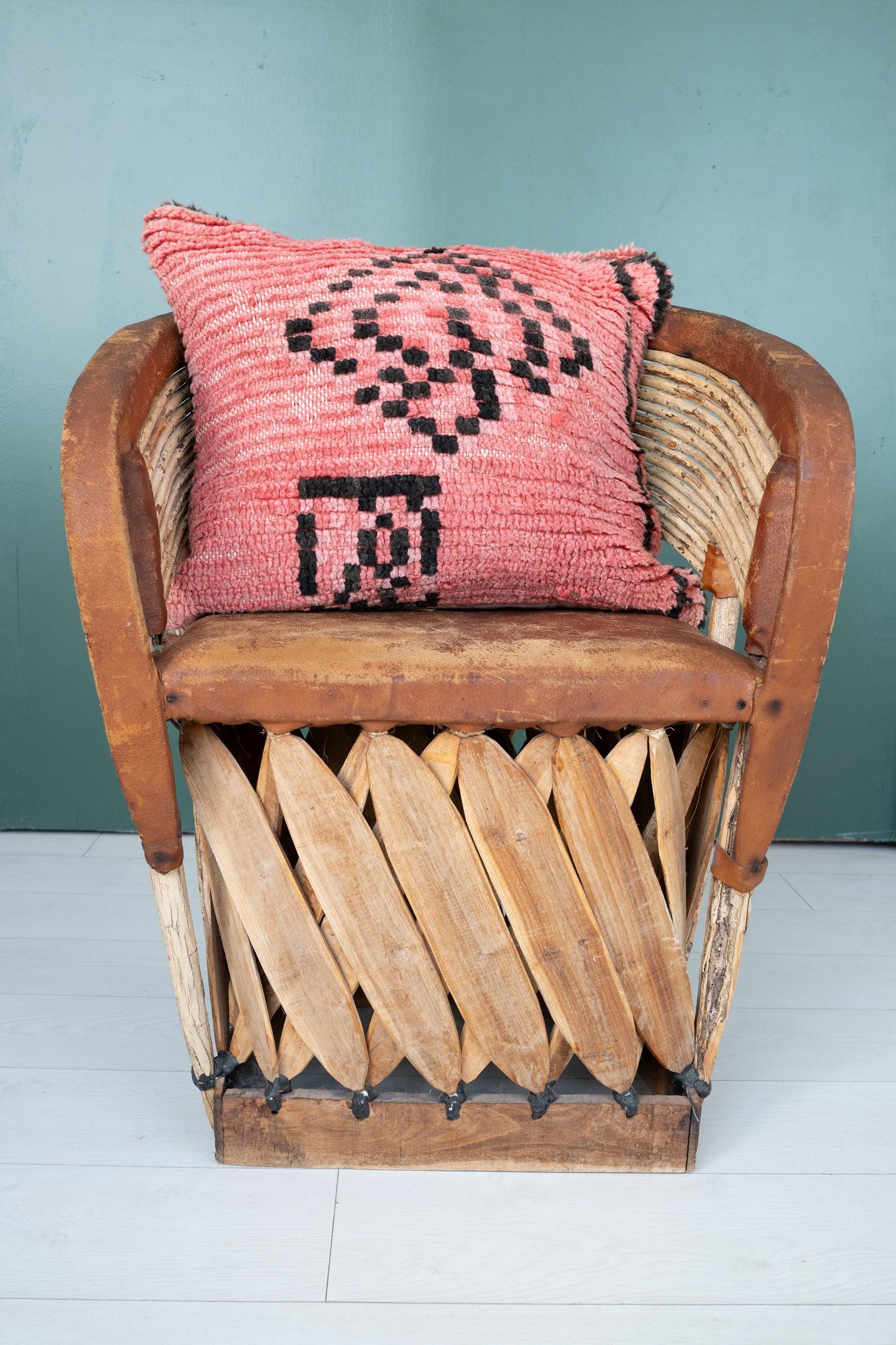 Crafted with care and intention, this pillow brings warmth, structure, and a story to any space—perfect for styling on a neutral sofa, rustic bench, or layered into an eclectic throw mix. The textured weave and symbolic motifs speak of artisan roots and timeless resilience.