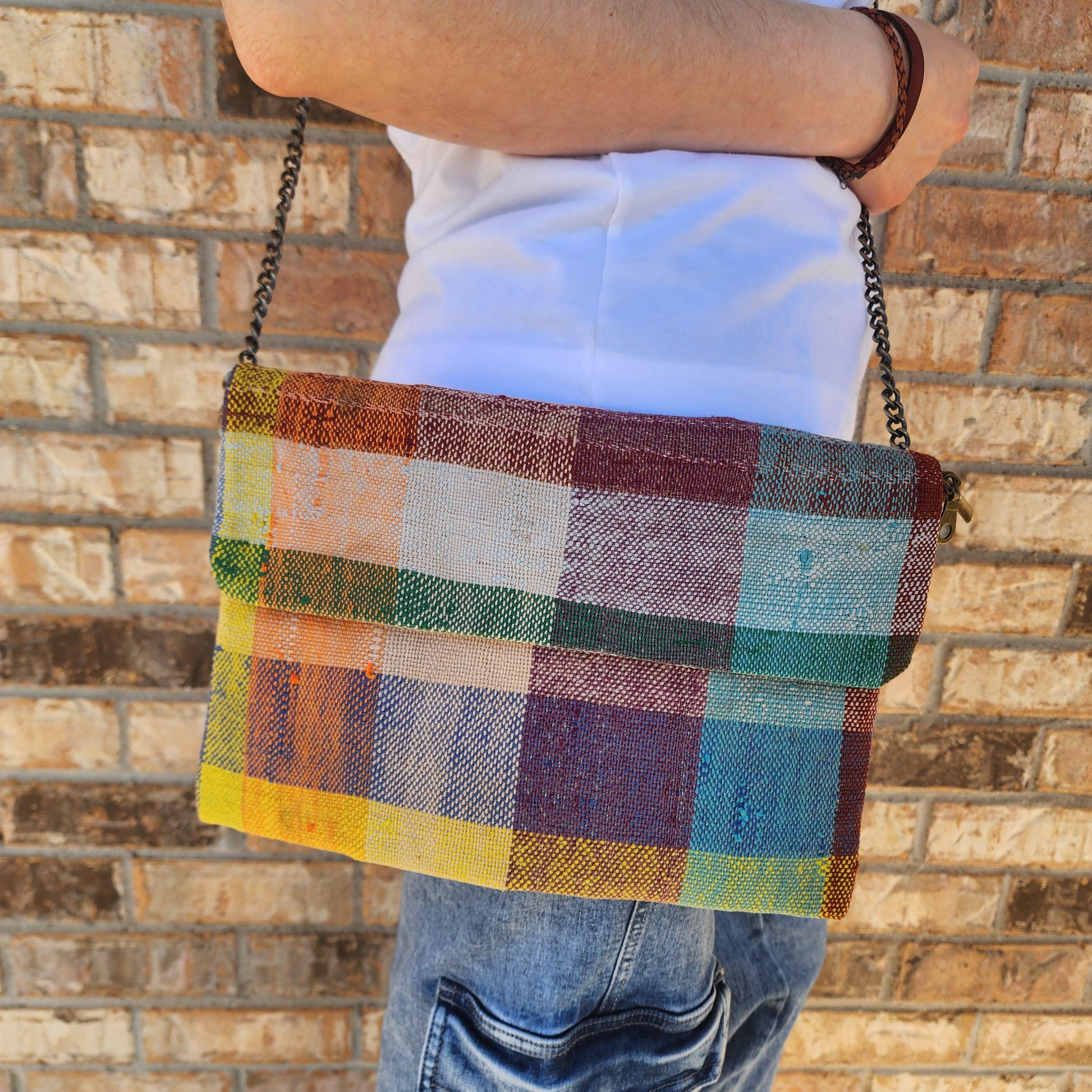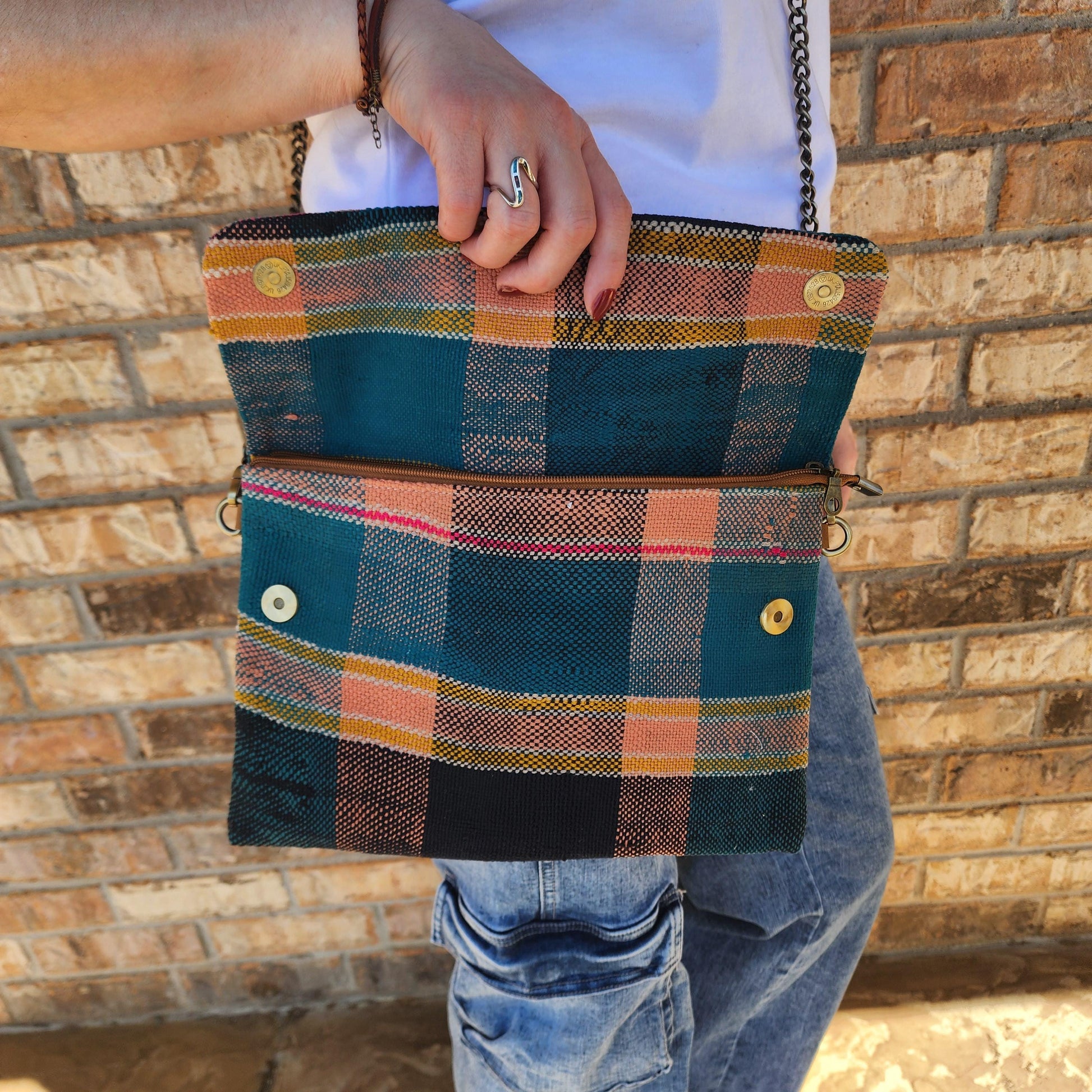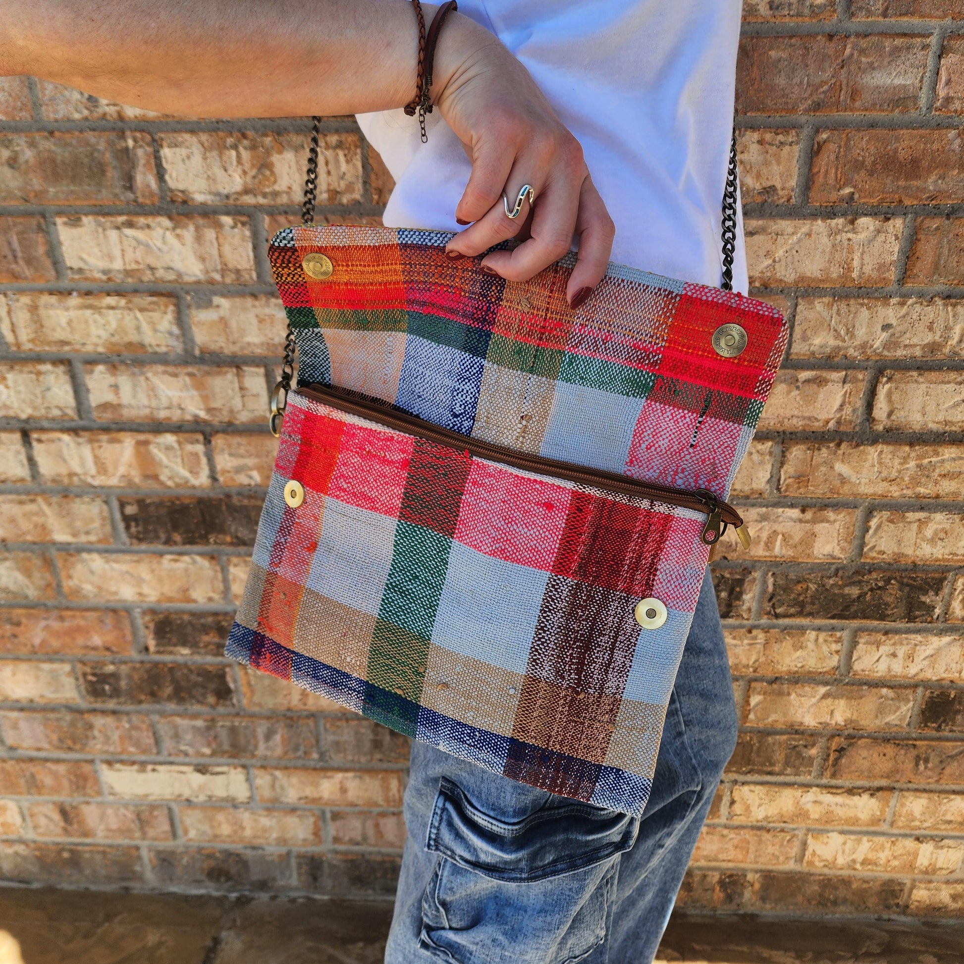 Upcycled Moroccan Blanket Crossbody Bag: Vintage Boho Chic Handbag with Bohemian Flair