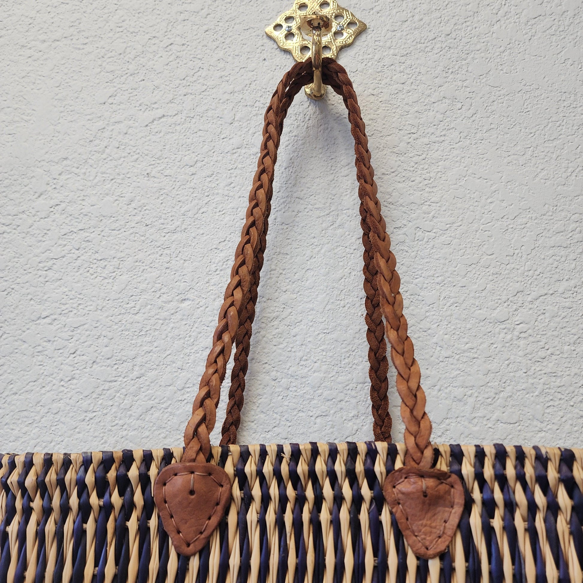 🌈 Vibrant Handwoven Moroccan Reed Basket – Artisan Charm Meets Everyday Utility** Add a splash of color and tradition to your daily routine with this stunning handwoven reed basket, crafted by skilled Moroccan artisans using age-old techniques. Each basket is a celebration of Berber heritage, woven from natural reeds and dyed in joyful hues that evoke the spirit of Moroccan souks. Whether you're curating a boho-inspired interior or seeking a unique gift, this basket blends function with artistry. No two are exactly alikeβ€”each one tells its own story. ✨ Features:** - **Authentic Craftsmanship**: Handmade in Morocco using sustainable, locally sourced reeds. - **Bold & Beautiful**: Eye-catching color combinations that brighten any space or outfit. - **Versatile Use**: Ideal for market strolls, beach days, picnics, or stylish home storage. - **Sturdy & Lightweight**: Durable weave with comfortable handles for easy carrying. 🧺 Dimensions:** Braided leather straps are 12.5 in long. Basket is 17 in wide at the top and 15 in wide at the bottom, 10.5 in tall, and 8in deep. (sizes may vary slightly due to handmade nature) 🎁 Perfect For:** Eco-conscious shoppers, design lovers, and anyone who appreciates handcrafted beauty with a cultural soul.