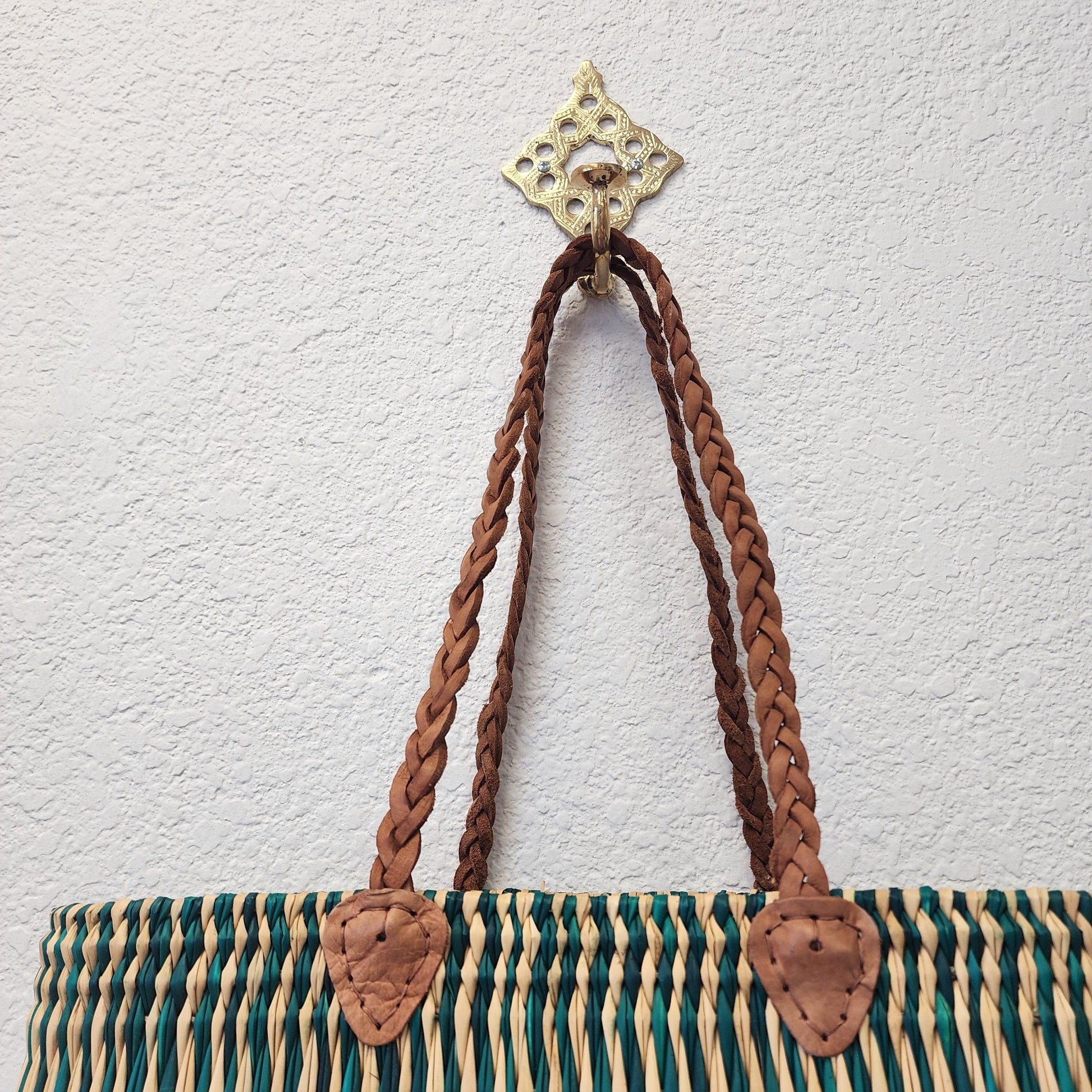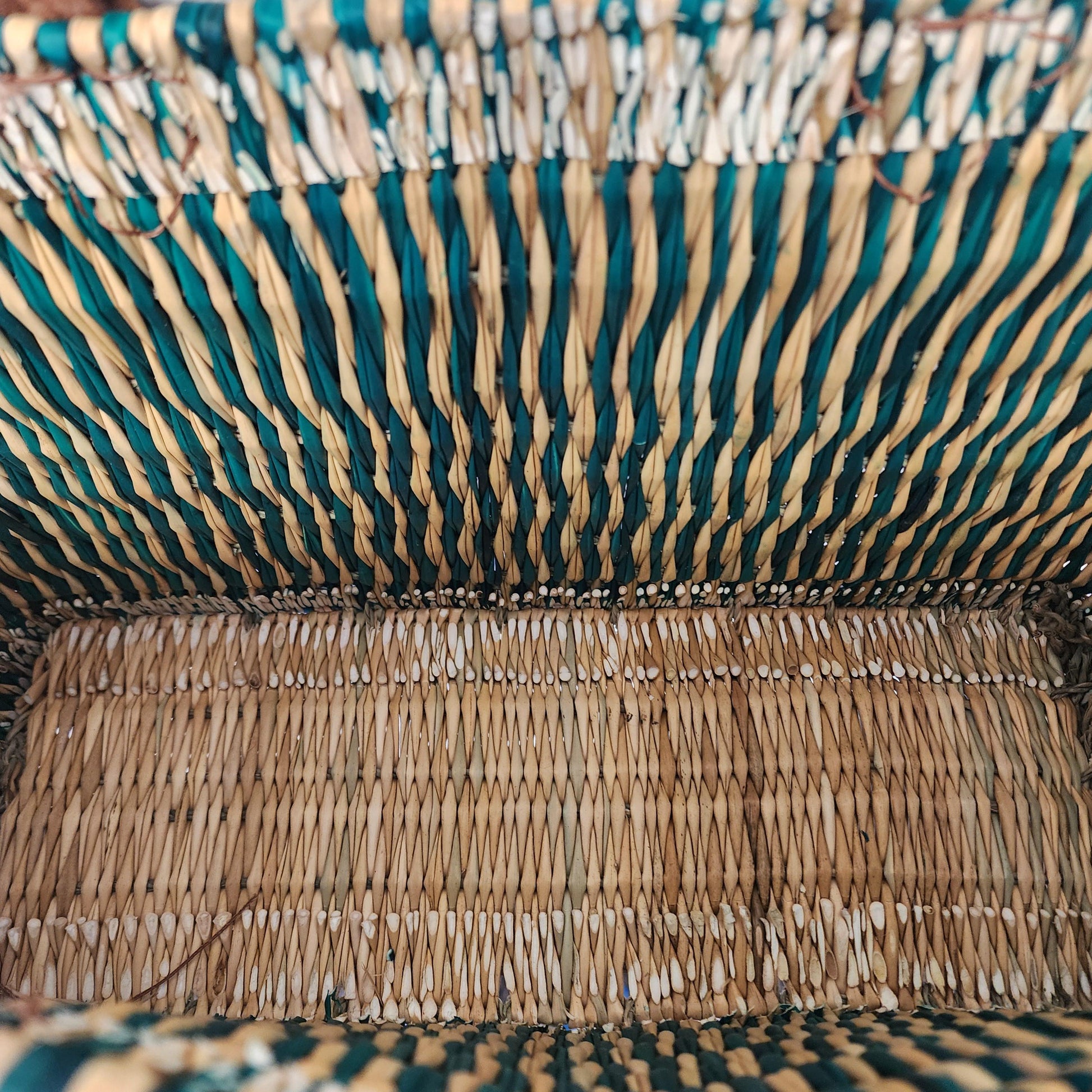 Vibrant Handwoven Moroccan Reed Basket - Essaouira Crafted Farmers Market Tote - African Shopping Carrier