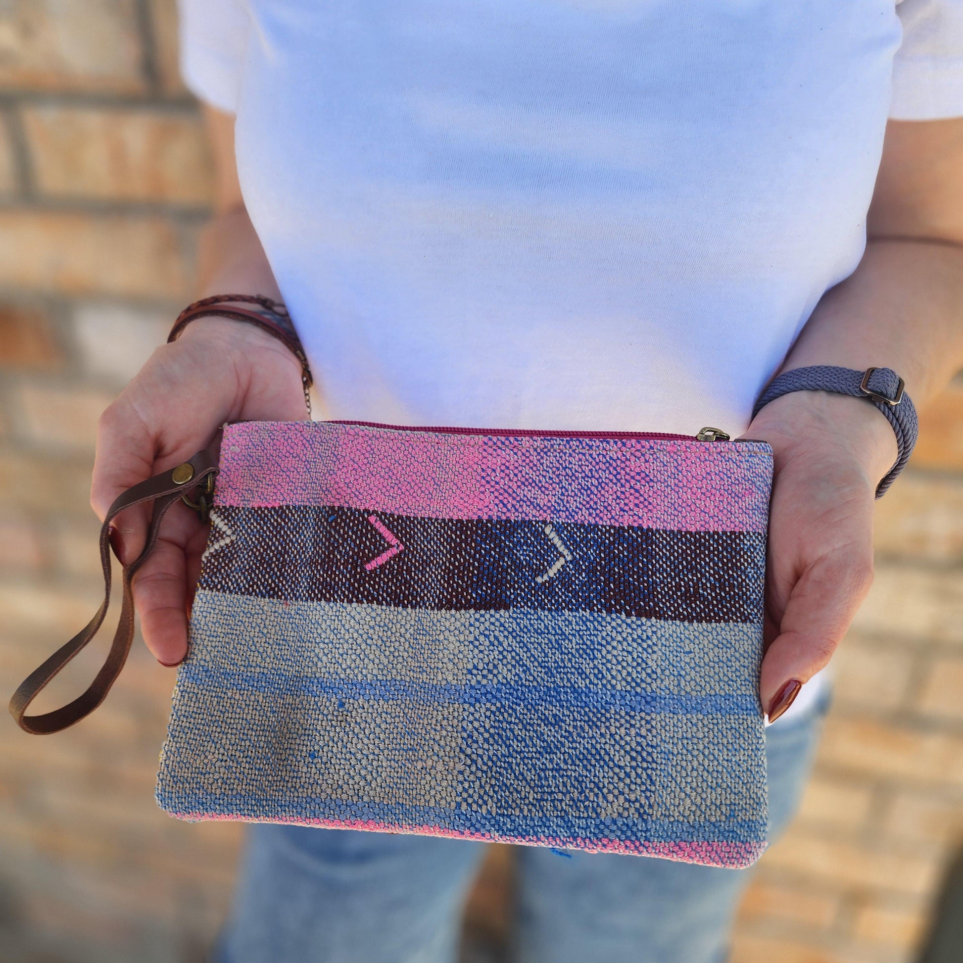 Vintage Moroccan Blanket Wristlet: Boho Coin Purse & Card Wallet for Bohemian Fashion Enthusiasts